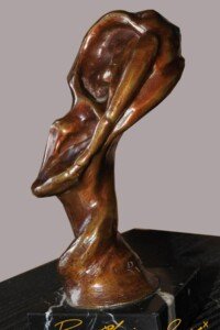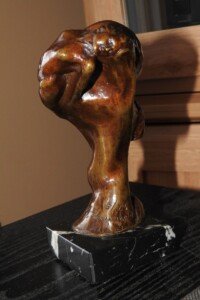 D’abord créé en terre, cette œuvre a été coulée en bronze pour une possibilité de 25 exemplaires. Le nombre d’exemplaires a été choisi en fonction du fait que de nombreuses femmes souhaitaient conserver une œuvre représentant la connexion et l’écoute d’elles-mêmes avec leur enfant grandissant. C’est un bel hommage à la complicité d’une femme avec la vie qui se développe dans son ventre.