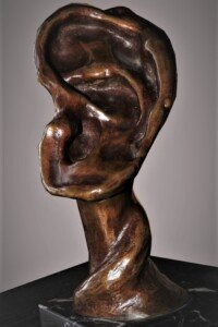 “L’écoute” est une œuvre qui représente l’écoute que peut avoir une femme pour son enfant qui grandit dans son ventre. En auriculothérapie, on disait qu’il y a un fœtus dans l’oreille, car le corps humain y est représenté dans les points thérapeutiques. De ce fait, de cette expression est né l’idée d’une femme qui écoute son enfant; un enfant qui commence à peine à grandir à l’intérieur de son ventre.