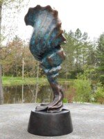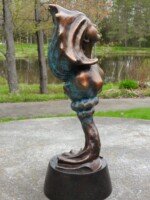 Ce bronze a été créé en souvenir d’une œuvre unique en pierre prénommée « La muse de Neptune ». Cette première œuvre a vue le jour dans mon imagination à la suite de l’observation minutieuse d’une pierre d’albâtre brute.